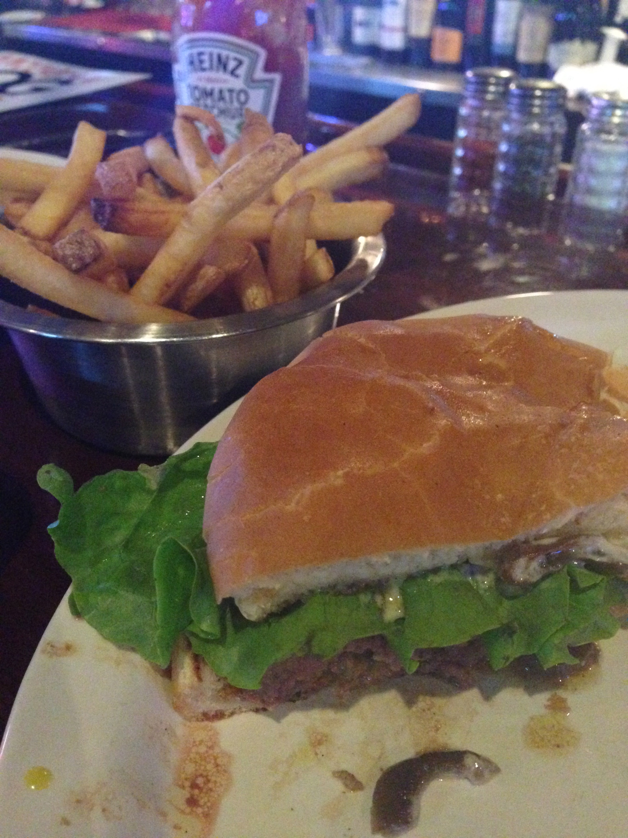 This half-pound of the highest-quality ground beef, cooked to order, with your choice of mustard or mayo (or both), served with red onions (raw or grilled), lettuce, tomato & pickles on the side did NOT disappoint. The atmosphere, the bartenders, the drinks (great bloody mary’s, espcially if you like them spicy!) and the food exceeded my expectations by a long shot.