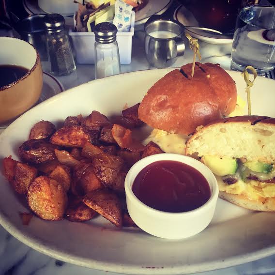 This glorious breakfast sandwich is called the H&B Hangover Helper – eggs, pepper jack cheese, avocado, applewood smoked bacon, chipolte aioli on a fresh brioche bun. The potatoes had a fantastic seasoning, with perfectly sautéed onions. And don’t even get me started on the coffee. This place has it all – even a coffee/smoothie walk up bar for those who smell the aroma and are smart enough to follow their nose while walking by. I did notice the smoothie menu was quite large, and had the option of adding booze!